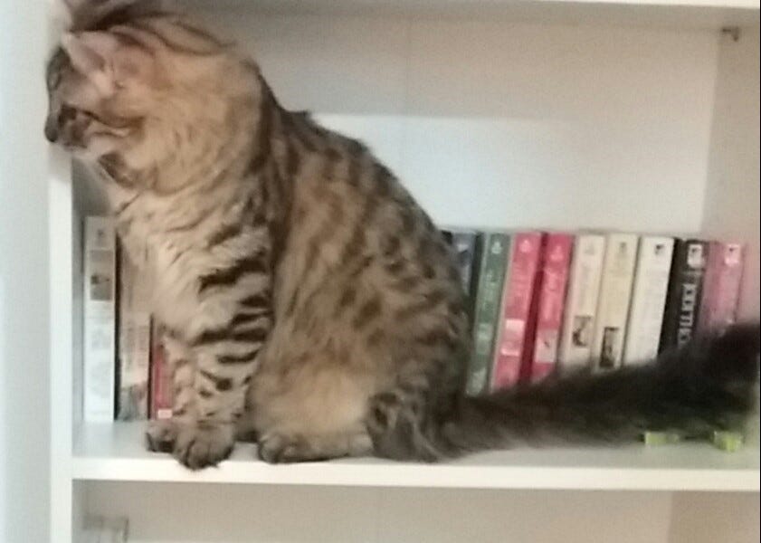 In my first draft, this was a funny story about a woman who knew nothing about cats but adopted one anyway, and how the cat taught her what he needed. It was full of typical cat antics such as hiding behind sofa pillows and pushing things off shelves.