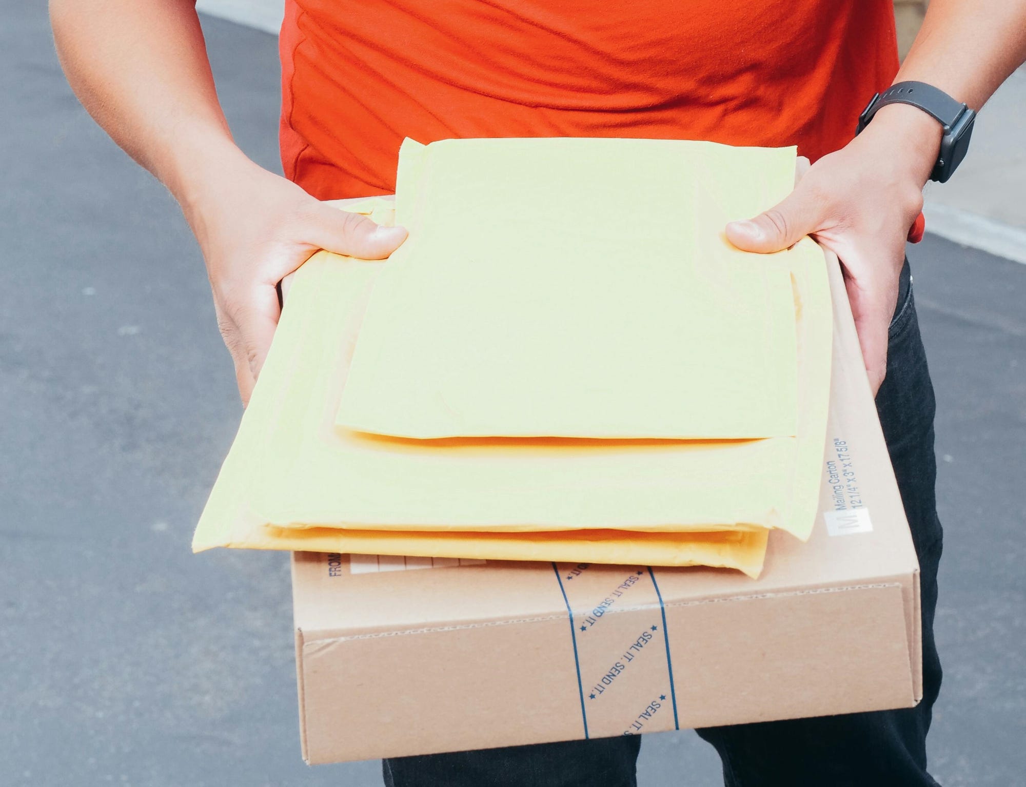 The young man stood by the mail cart holding some mail. Looking at everything except his grandmother, he shuffled his feet but remained silent.